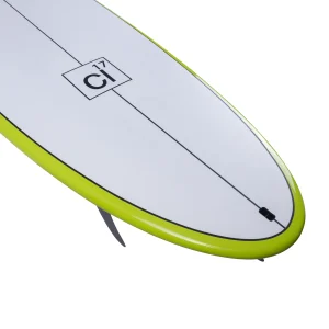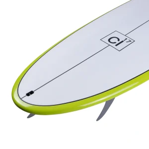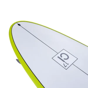 • The flatter rocker and added width catch waves easily and generates speed combined with a pulled-in round tail for bite and hold through rail turns and in steeper waves.
