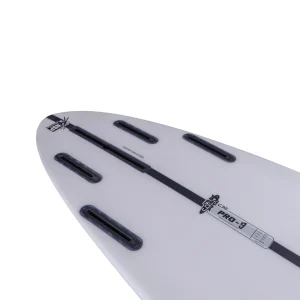 Designed as a single-fin or quad-fin set-up, this is a low-volume, extremely high-performance longboard, capable of doing it all with tons of maneuvering and solid nose-riding. The most significant tweak we added recently is in the Pro-9’s nose-riding capability and biaxial carbon stringer.