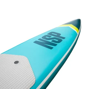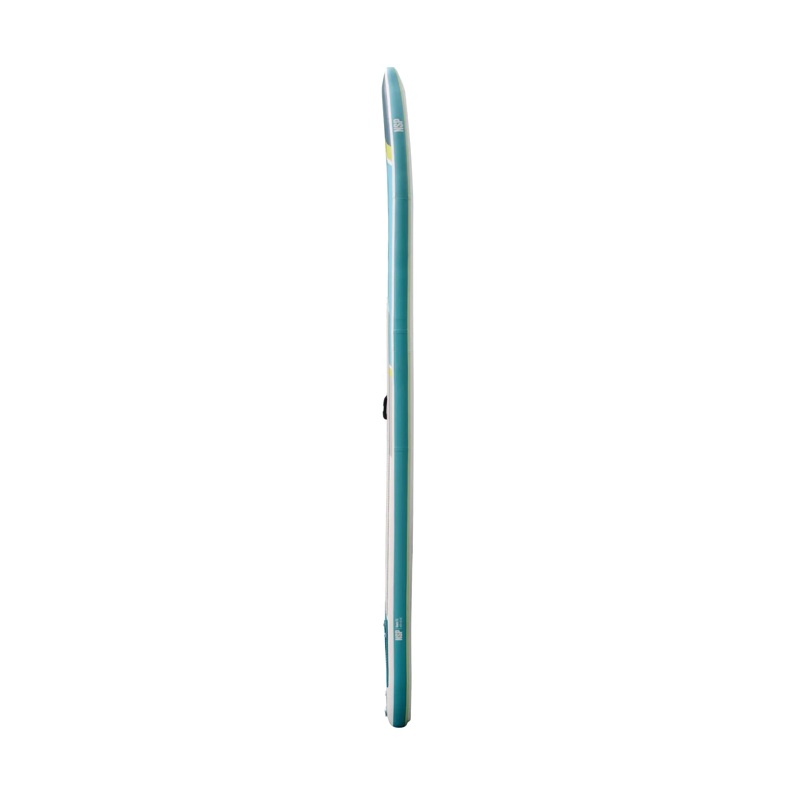 • Fusion Fusion-reinforced double layer glueless pre-lamination combined with the new machine-woven drop stitch. Compared to traditional knitted drop stitches, the fibers of the new machine-woven drop stitch are stiffer and thus the number of fibers per square meter can be reduced. This allows an average weight reduction of 1.5 kg, while the board is also stiffer, less bouncy and allows for faster acceleration.