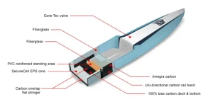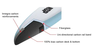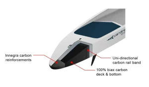 –  Carbon Innegra™ reinforcement adds impact protection in the nose and tail for close quarter battles at race starts, beach race finishes and buoy turn sections