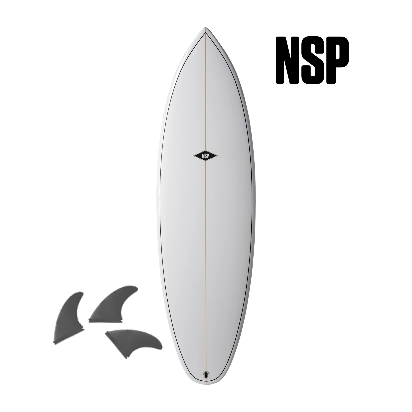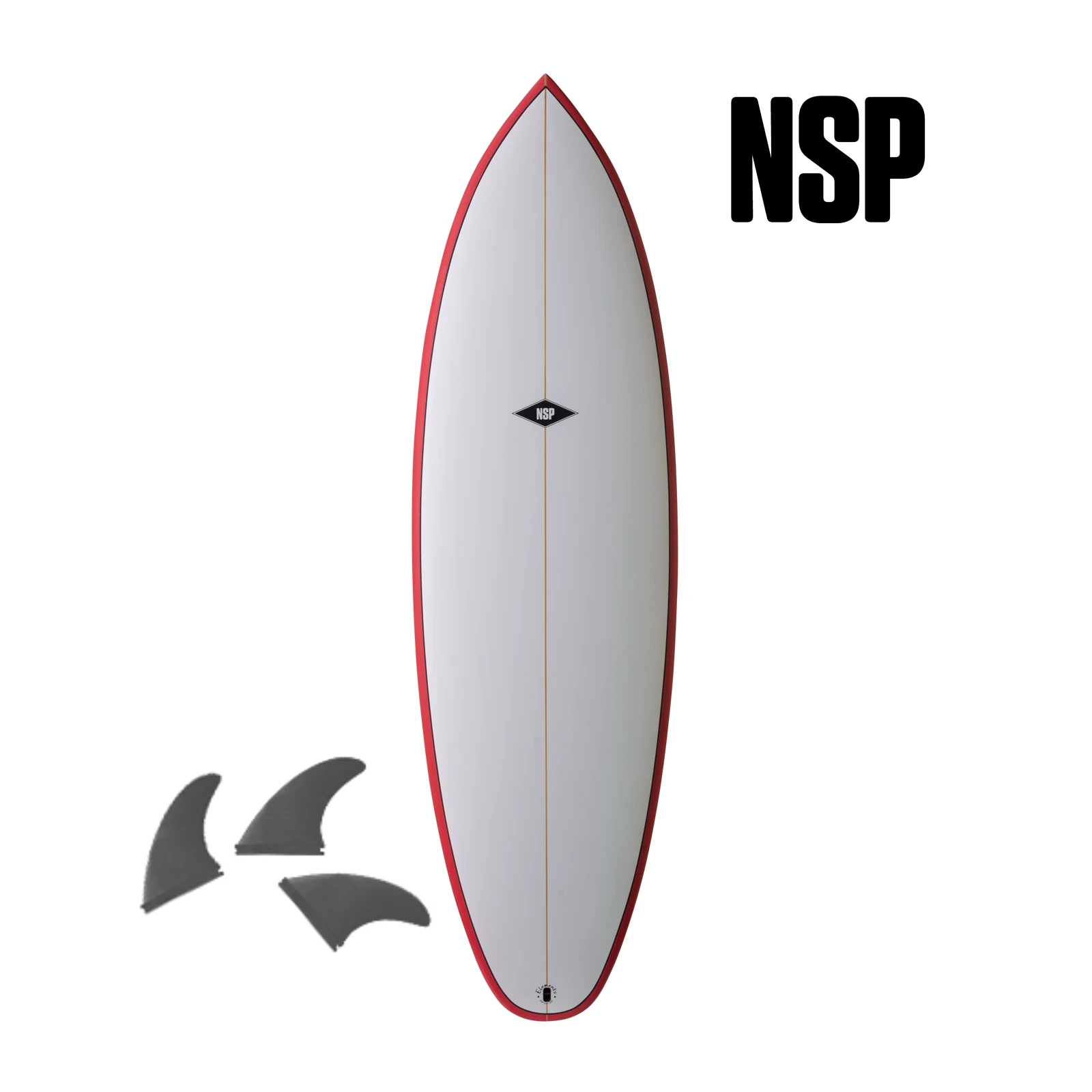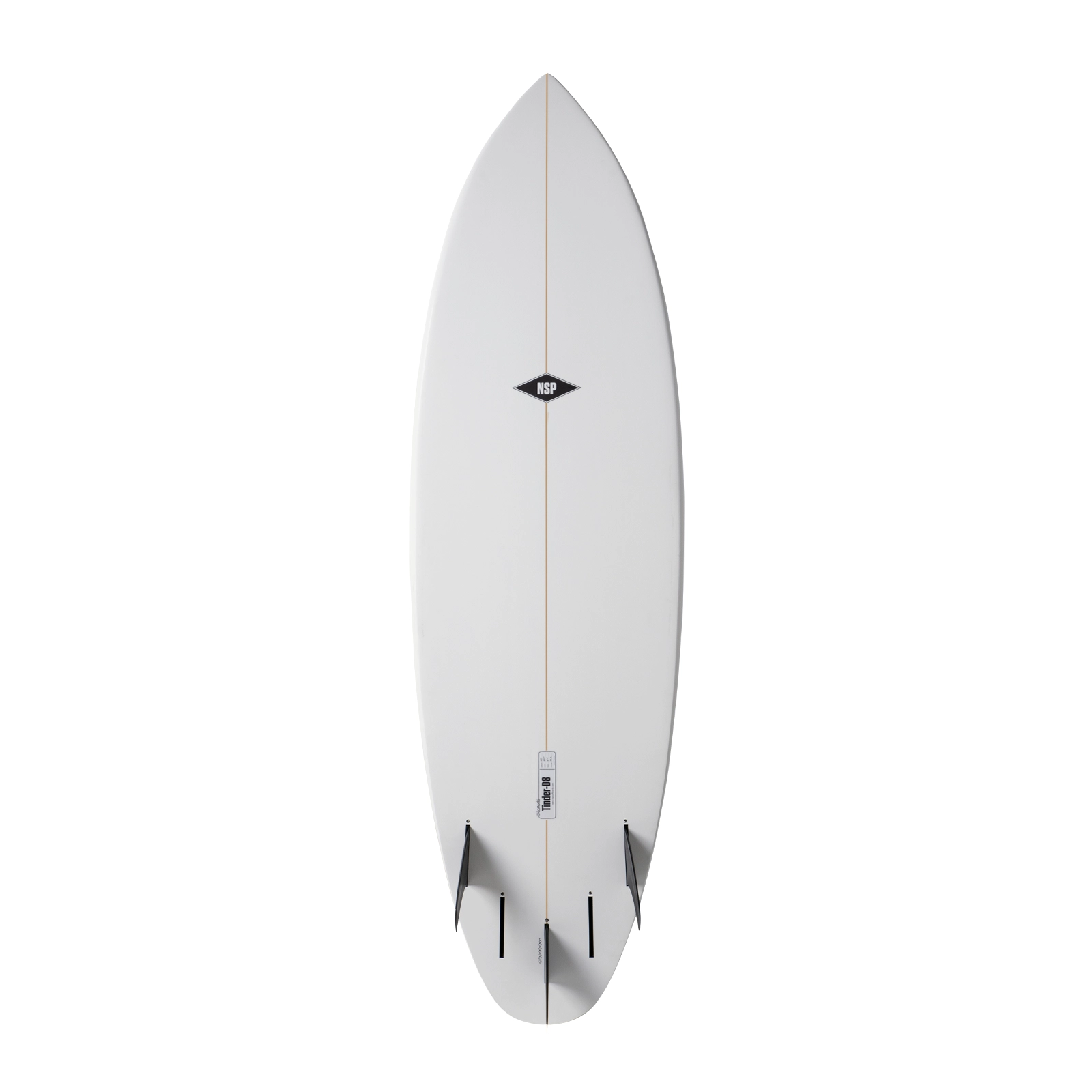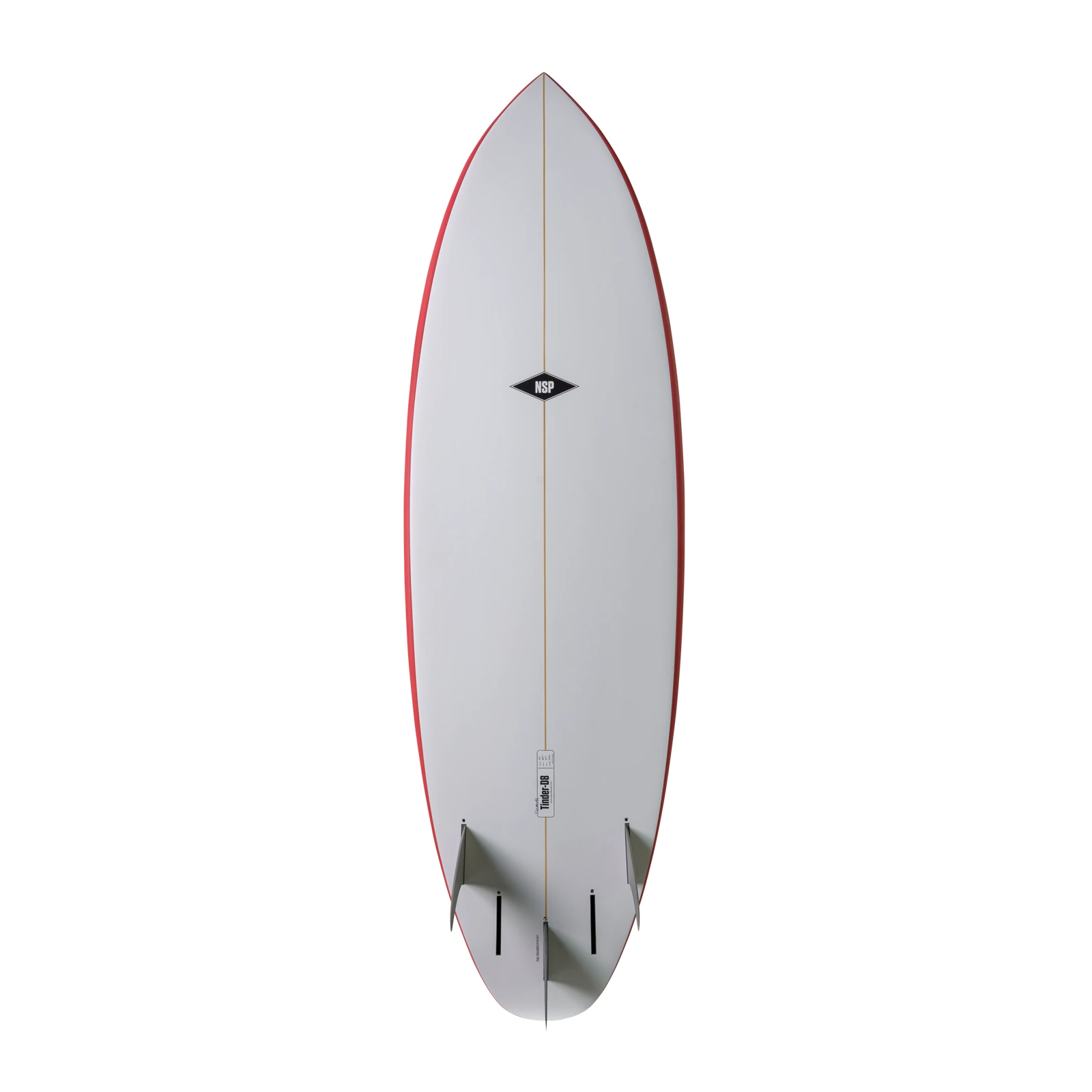 The Elements Tinder-D8 has NSP’s 5 FTU fin boxes (all compatible with Futures® Fins) and comes out of the box with 3 MFC-designed fins.